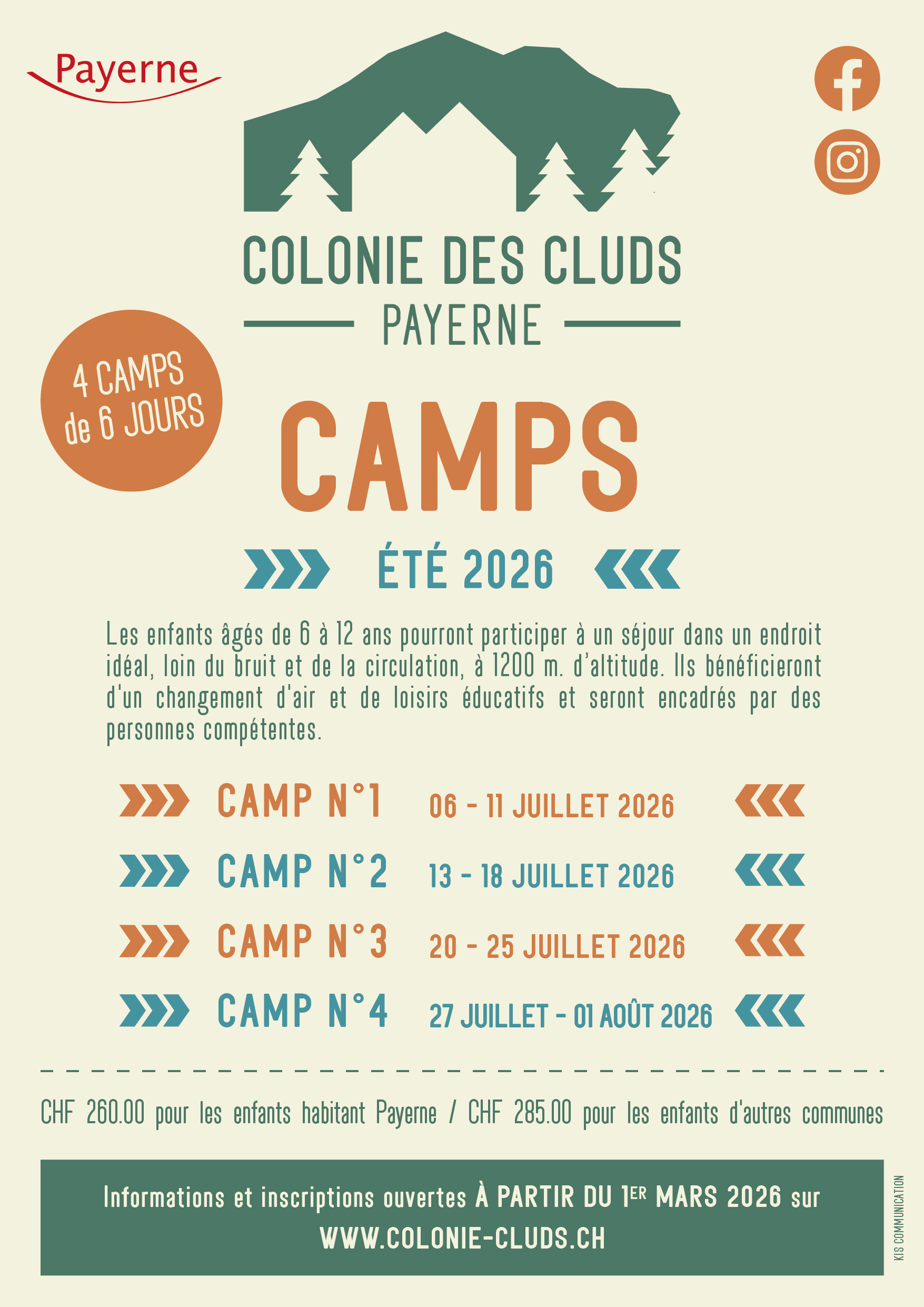 Le but premier de l’Association, à but non-lucratif, est de permettre aux enfants de Payerne et des environs de pouvoir passer des vacances en colonie à la montagne. Elle organise de ce fait des camps de vacances chaque été.